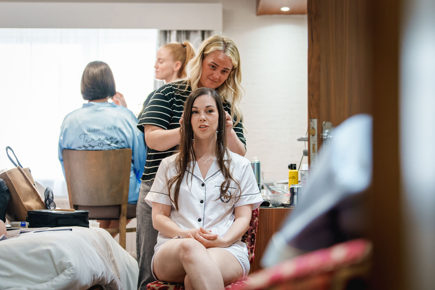 The day began very relaxed and I arrived for preps at The Crown Hotel (across the road from Bawtry Hall) around 3 hours prior to the ceremony.  Rachel’s bridal preparations were full of smiles and more than a few laughs. Rachel wore an elegant, off shoulder, lace-adorned dress perfectly matching the classic charm of Bawtry Hall.
