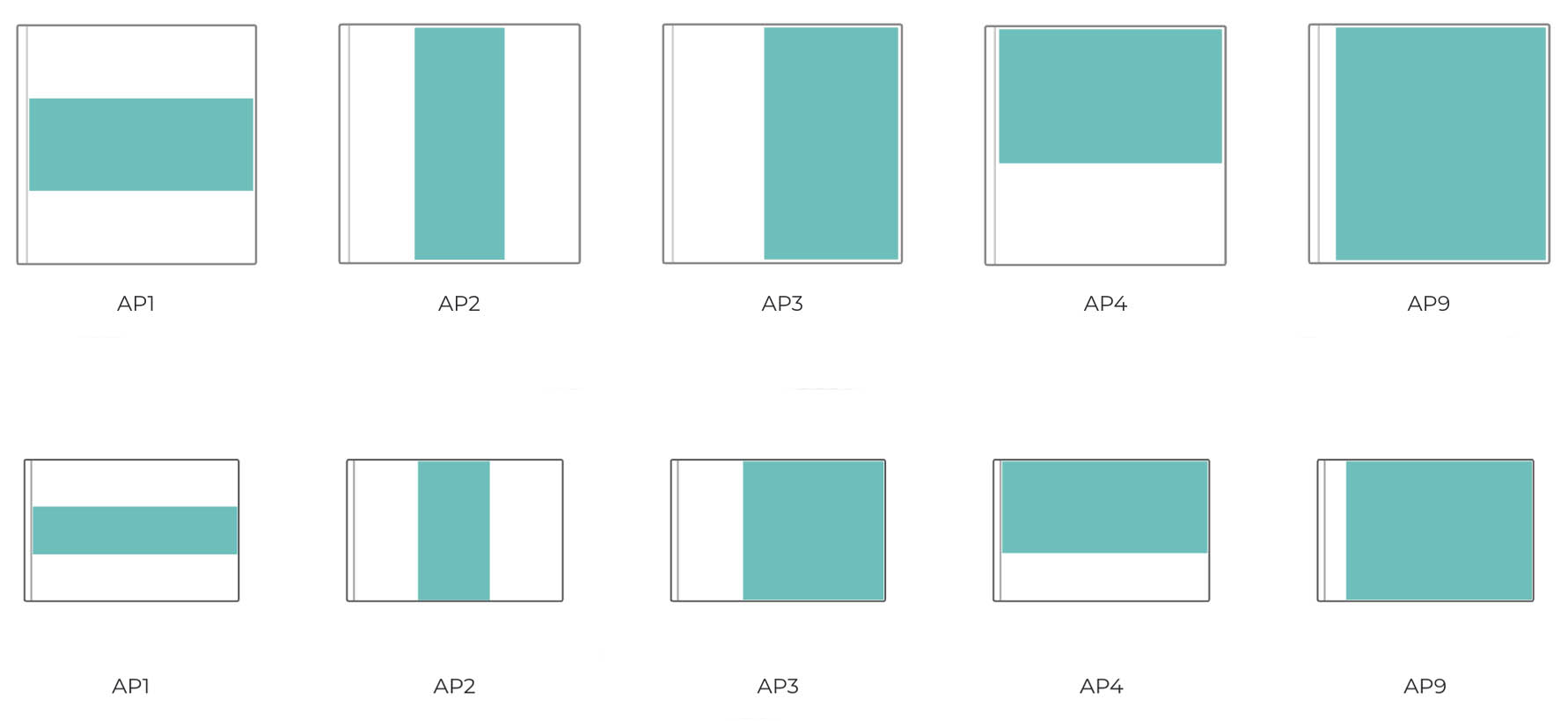 3. If you are choosing an acrylic cover, choose the ‘AP’ number. (You can see both what the album would like in horizontal (A4 / 12×8) or square 10×10 or 12×12 ratio in the examples.